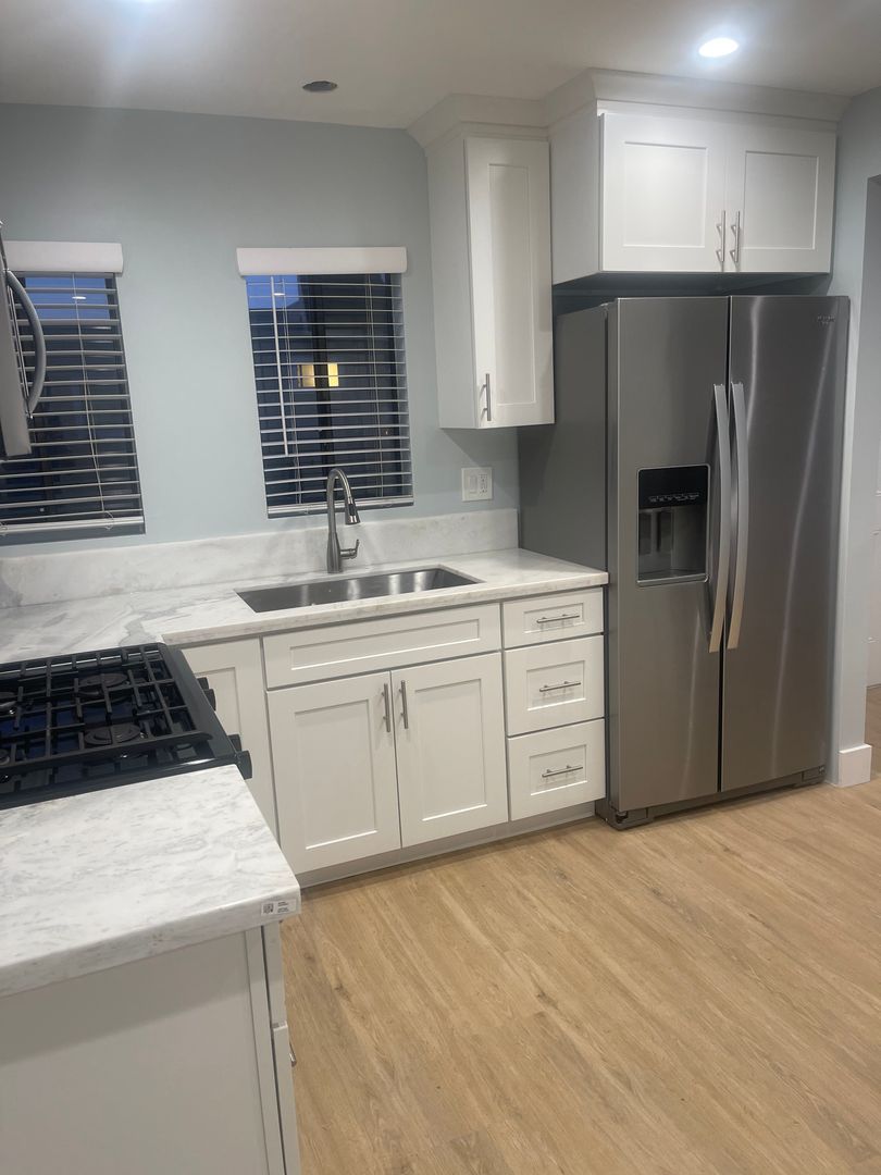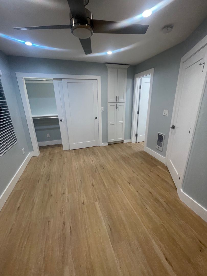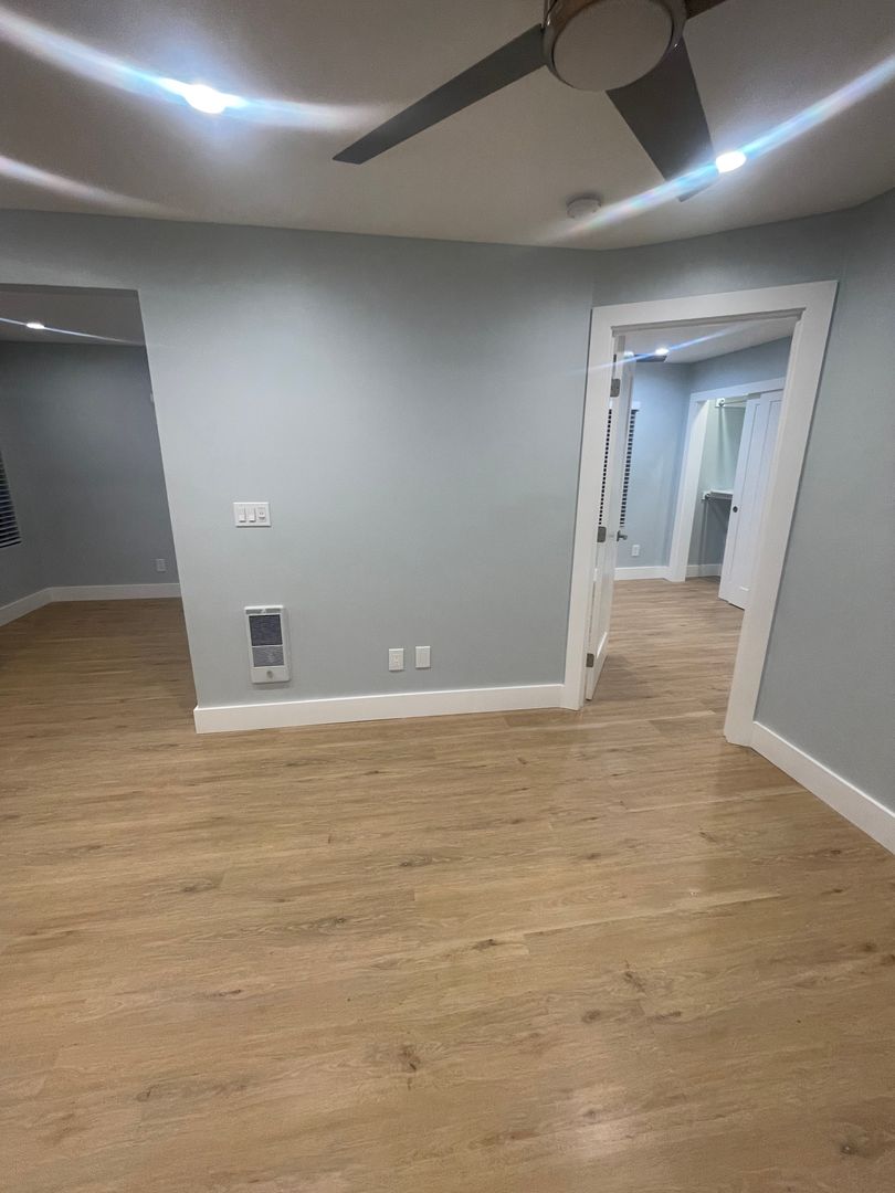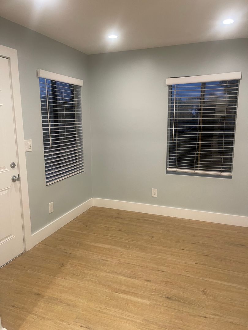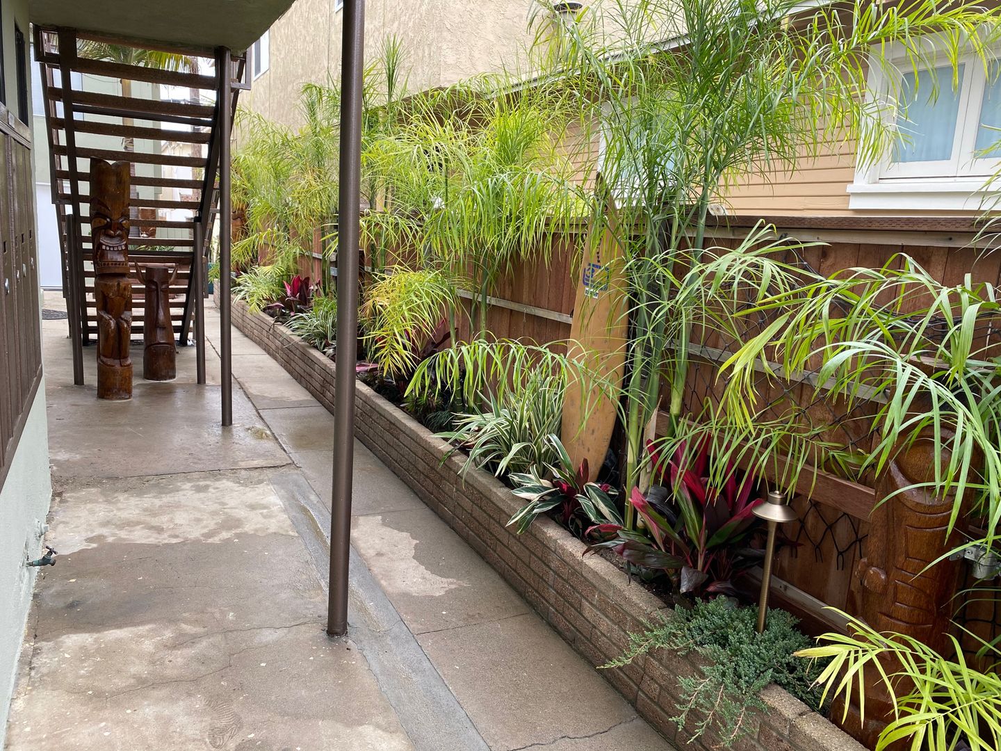 This charming apartment has white shaker cabinetry, marble white counters, stylish laminate wood flooring, soothing paint colors that reflect the Pacific Ocean, white wood blinds and contemporary ceiling fans. The apartment rent is $2900 monthly plus $50 monthly garage rent by separate lease for a total of $2950 monthly.