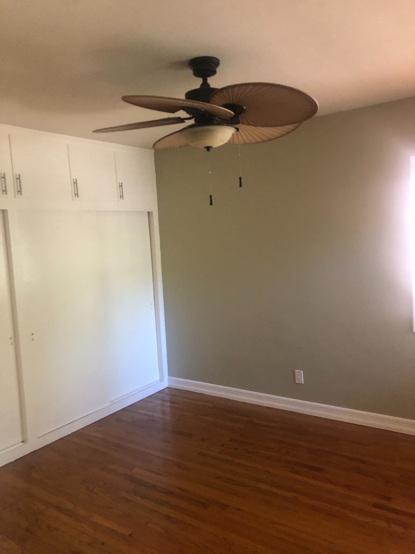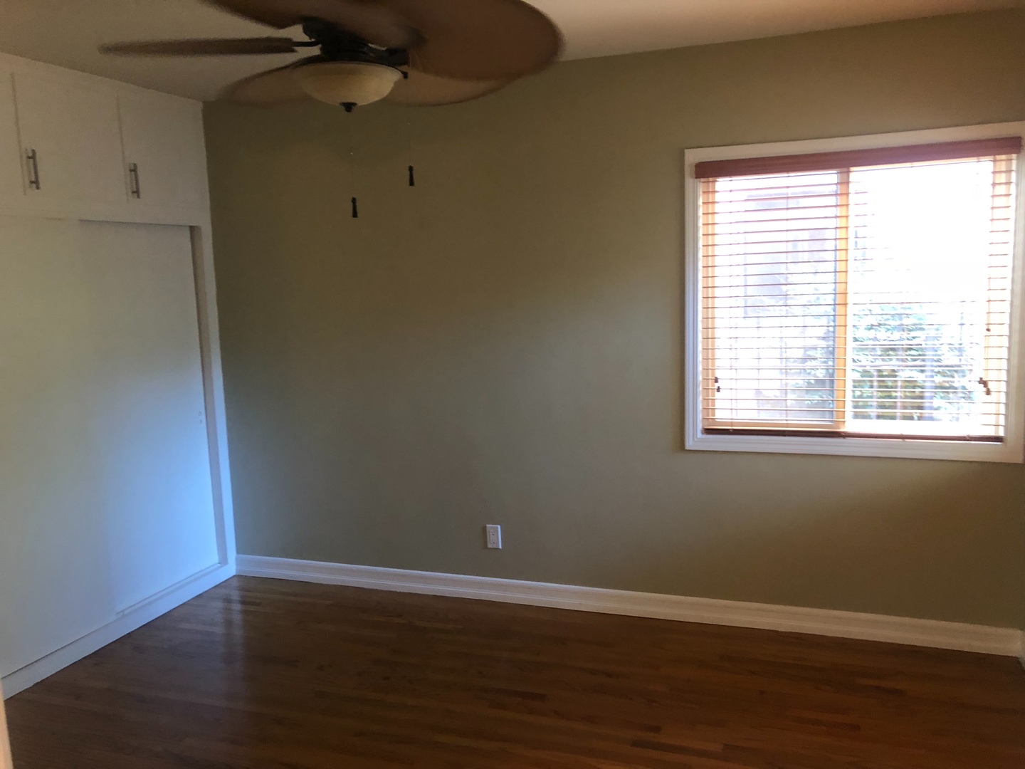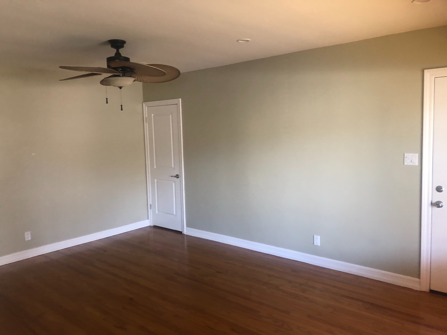 The amenities include shaker style wood-stained kitchen cabinets, granite counters, glass tile backsplash, tropical ceiling fans, LED lighting throughout, horizontal wood blinds and soothing paint colors. The original hardwood floors are beautiful. Inquire at church across the street to rent a parking space.