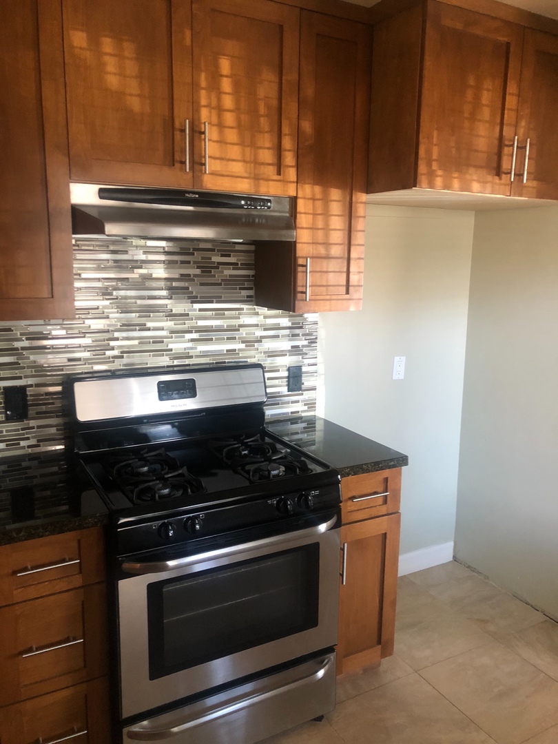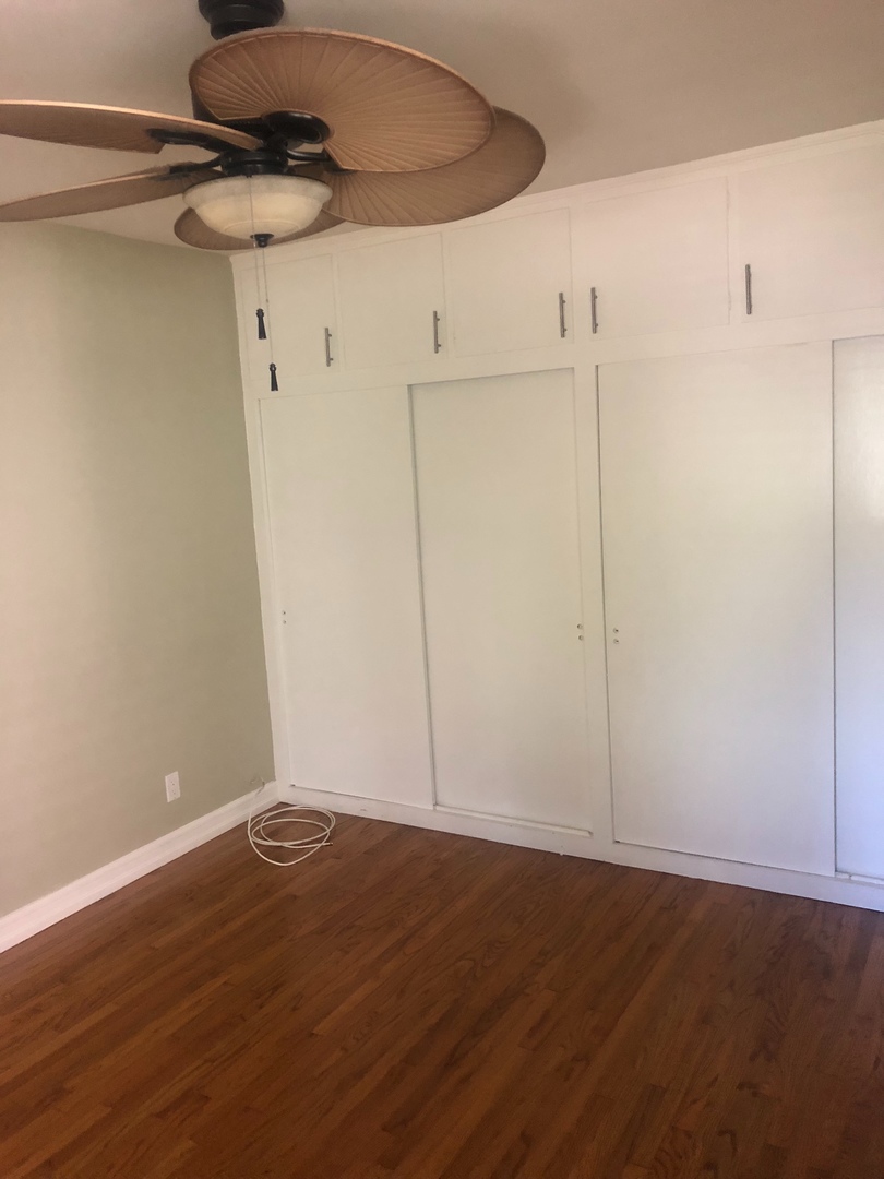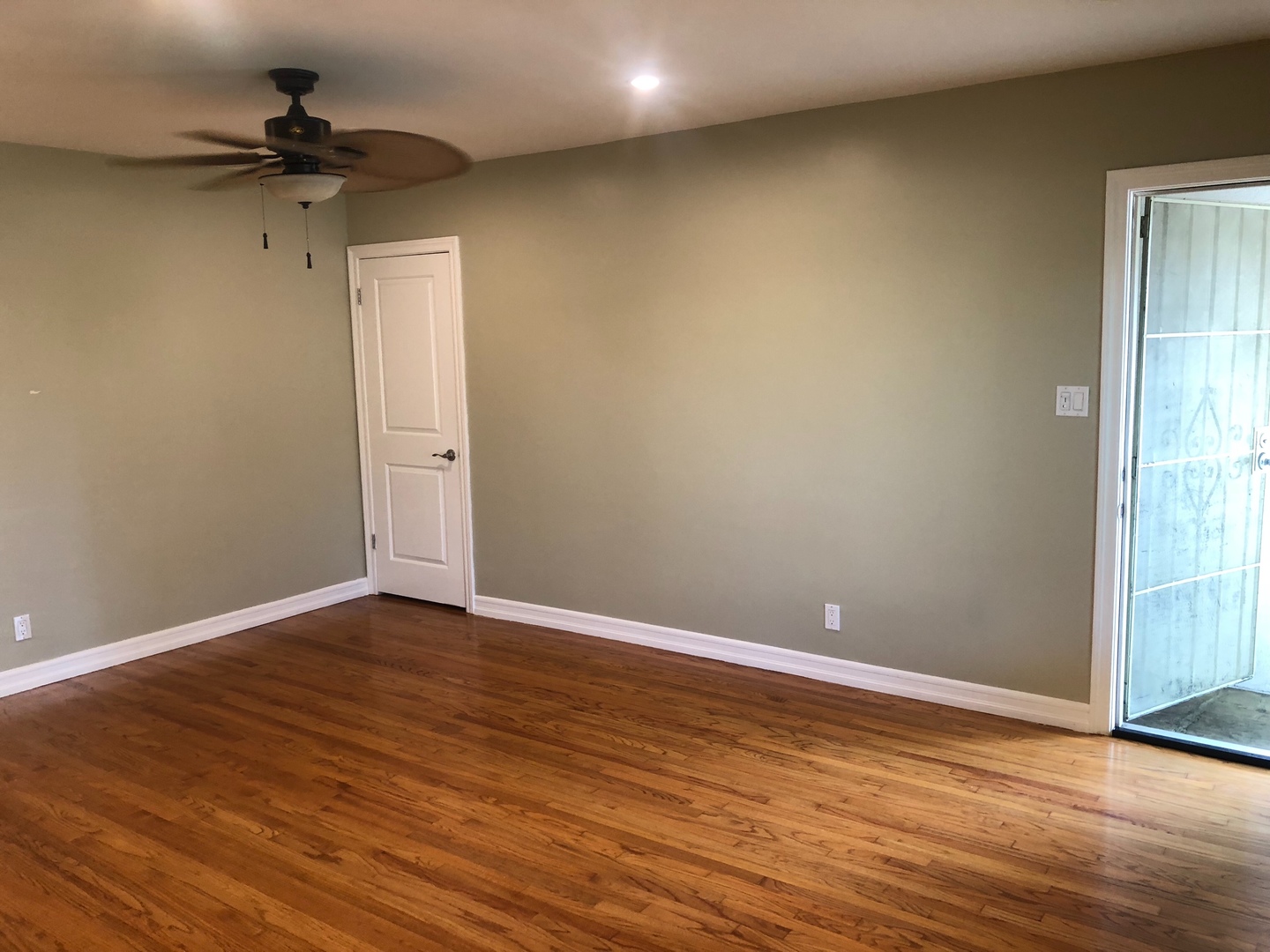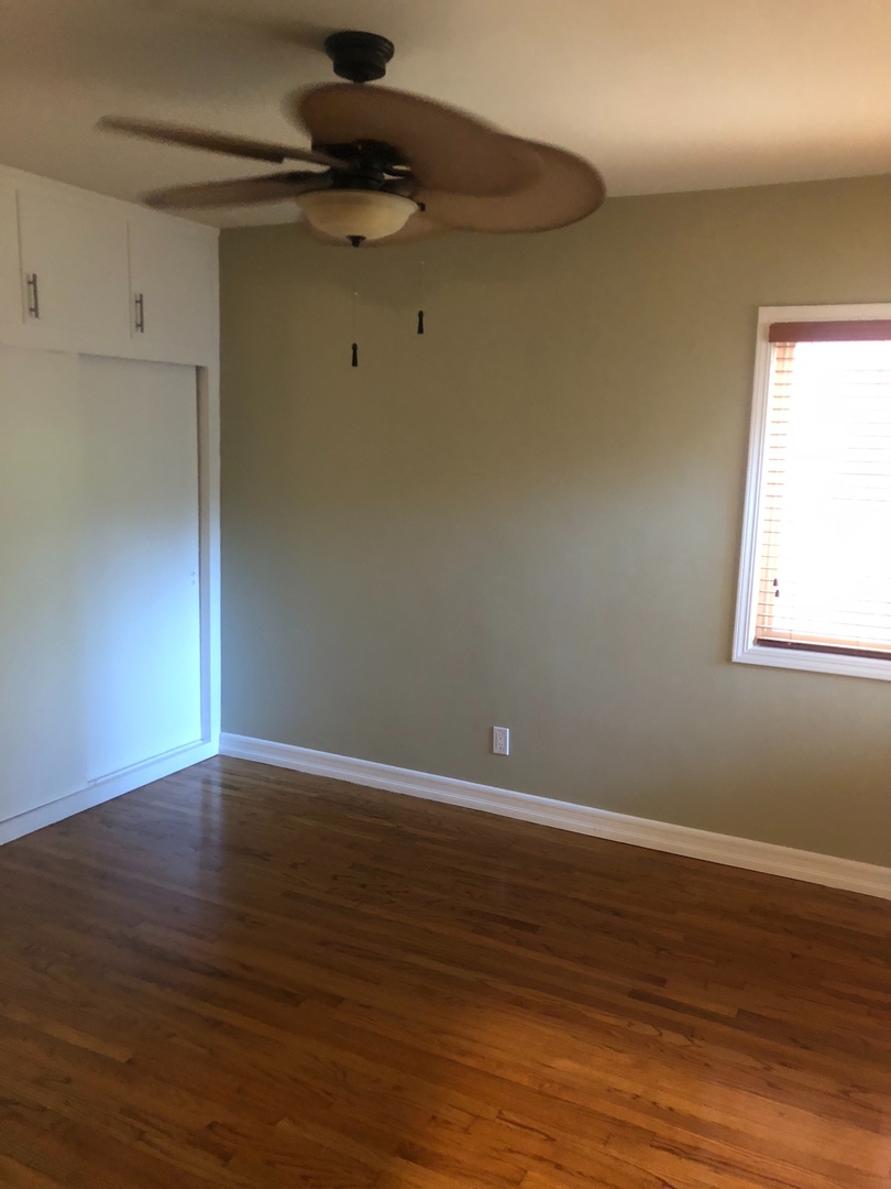 The amenities include shaker style wood-stained kitchen cabinets, granite counters, glass tile backsplash, tropical ceiling fans, LED lighting throughout, horizontal wood blinds and soothing paint colors. The original hardwood floors are beautiful. Inquire at church across the street to rent a parking space.