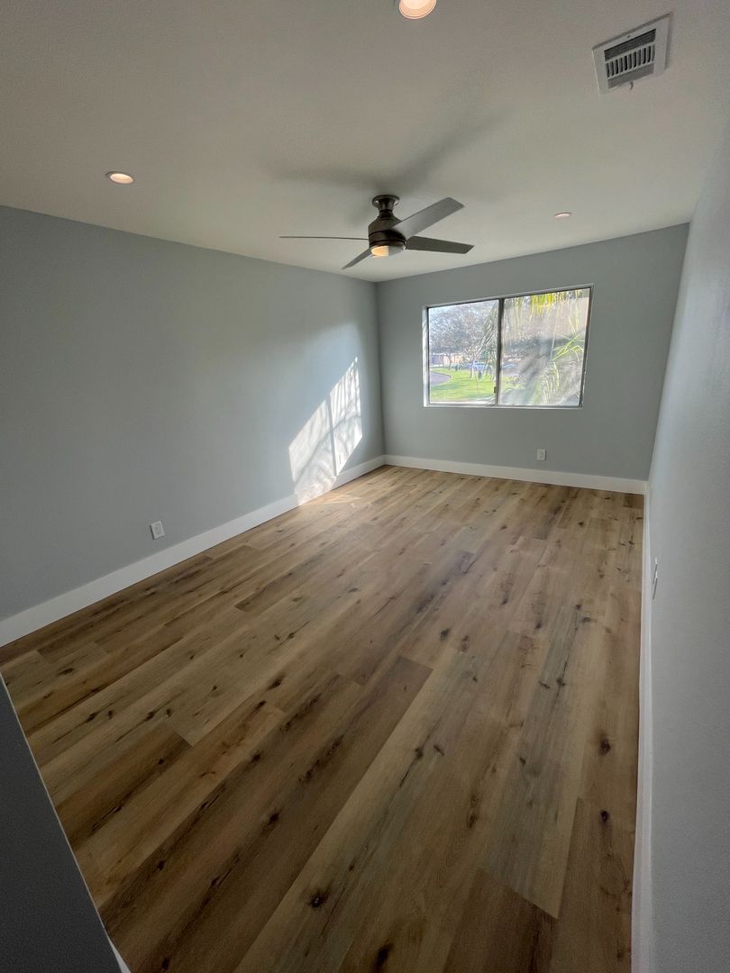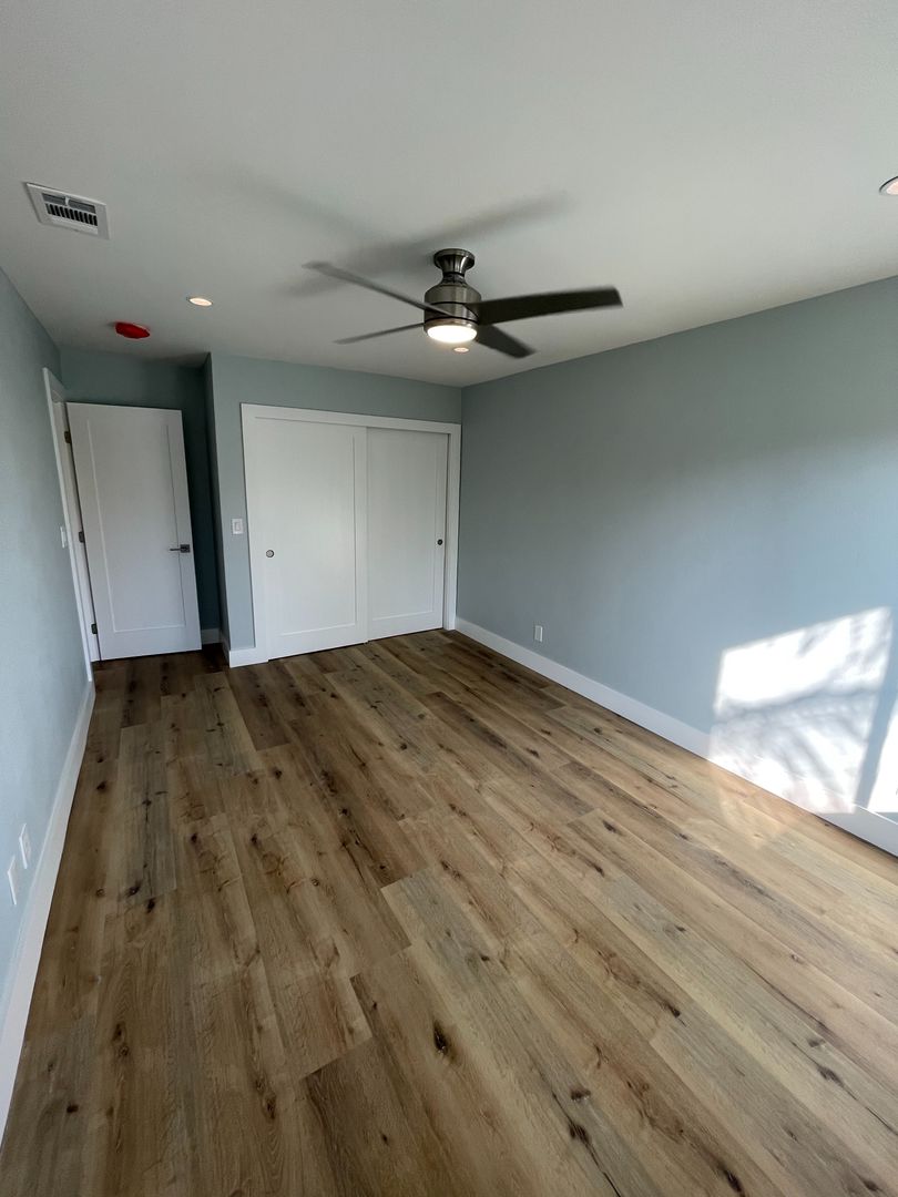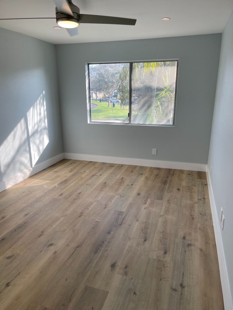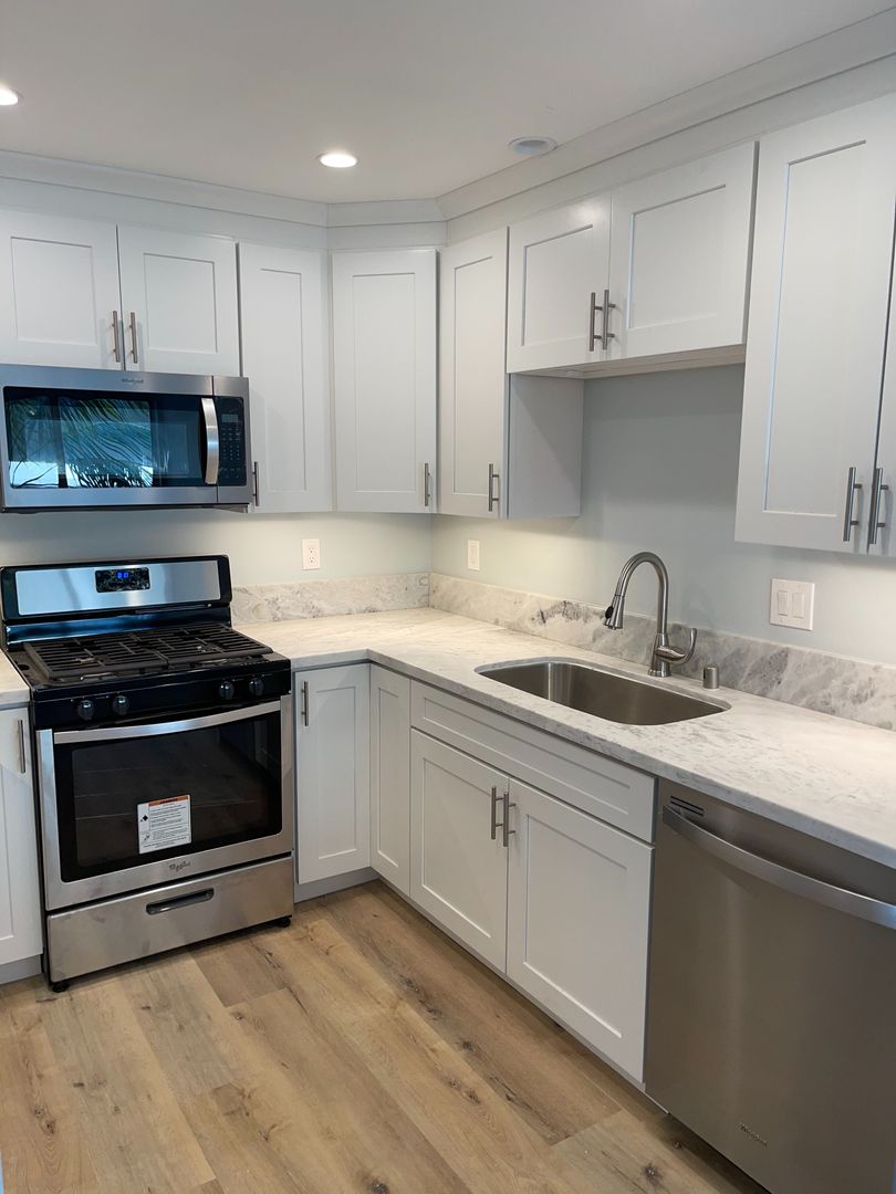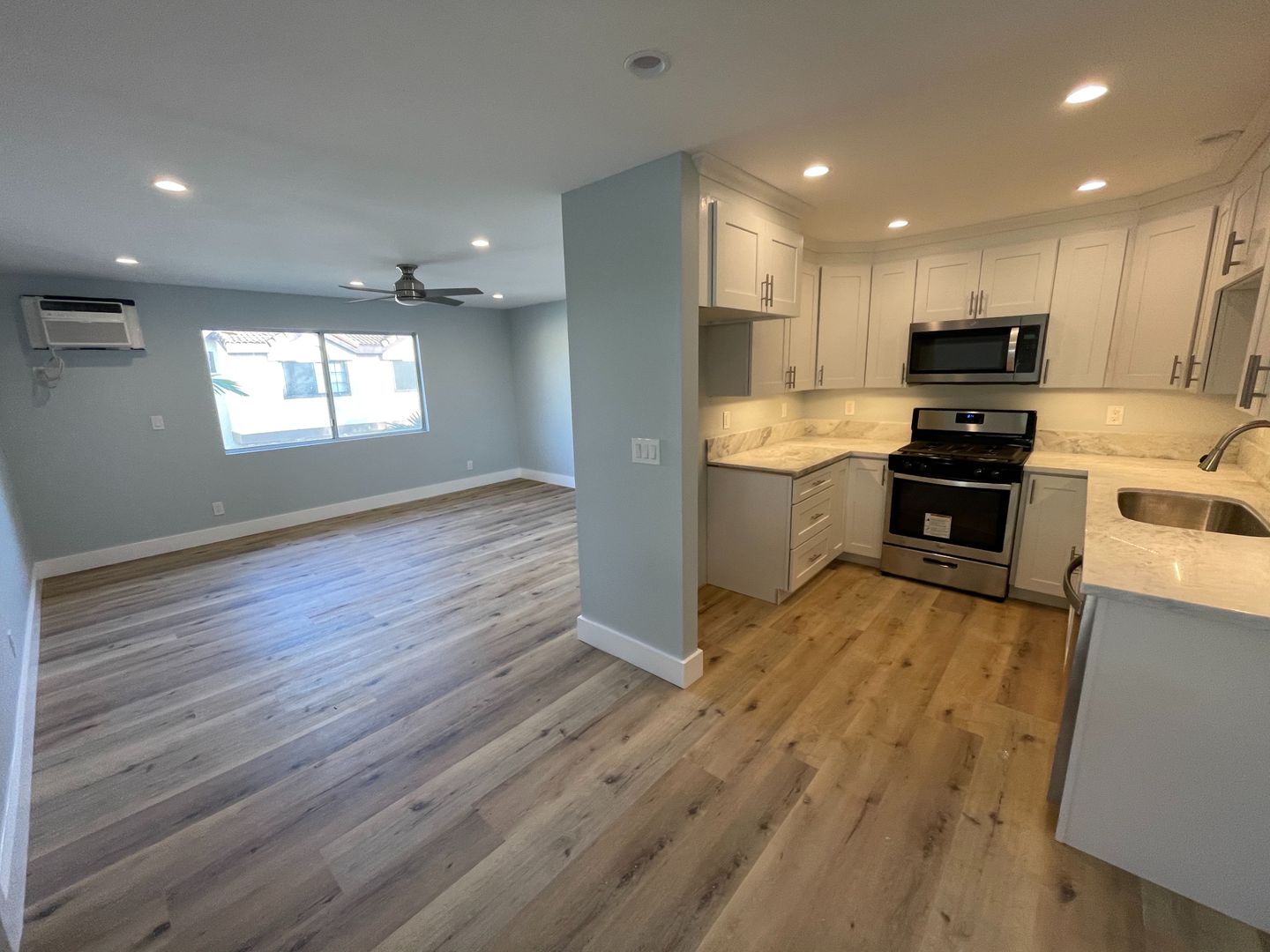 The light and spacious apartment includes white shaker cabinetry, white marble kitchen counters, stylish laminate flooring, contemporary ceiling fans, LED canned lighting with dimmer switches throughout, large walk-in closet in the master bedroom, horizontal blinds, and much more. A designer's dream.