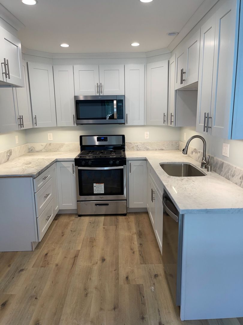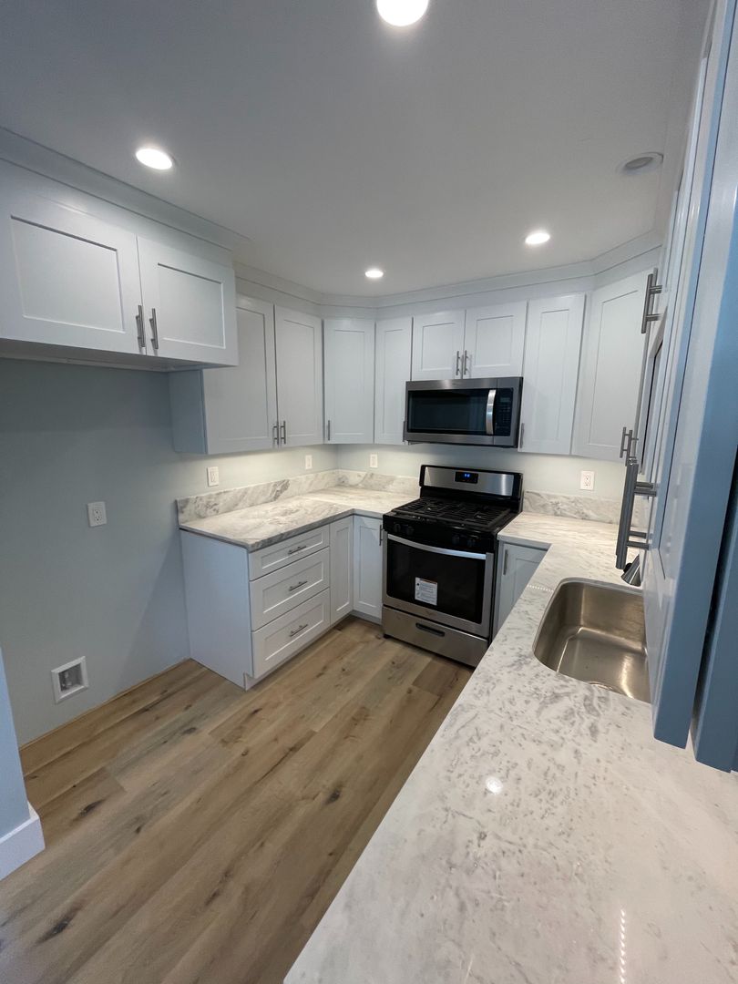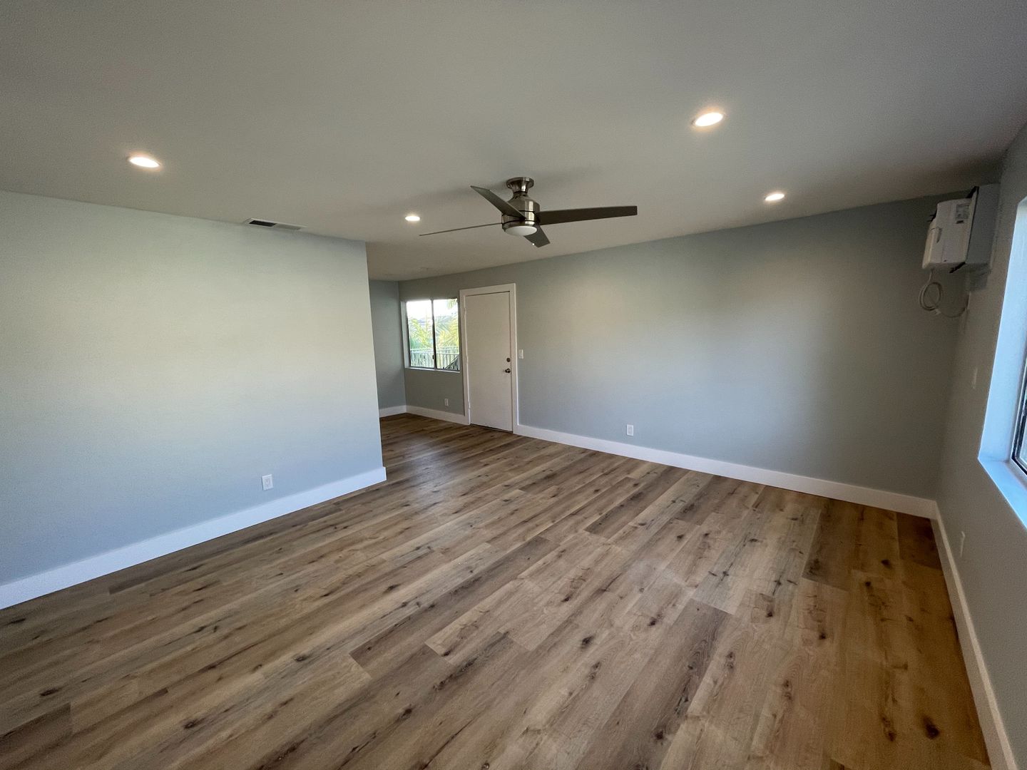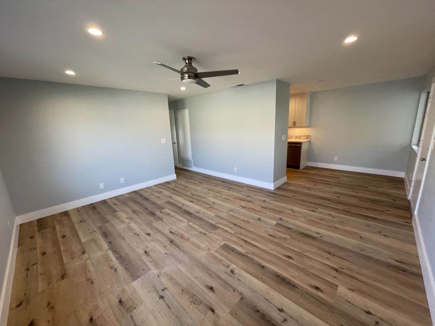 The light and spacious apartment includes white shaker cabinetry, white marble kitchen counters, stylish laminate flooring, contemporary ceiling fans, LED canned lighting with dimmer switches throughout, large walk-in closet in the master bedroom, horizontal blinds, and much more. A designer's dream.